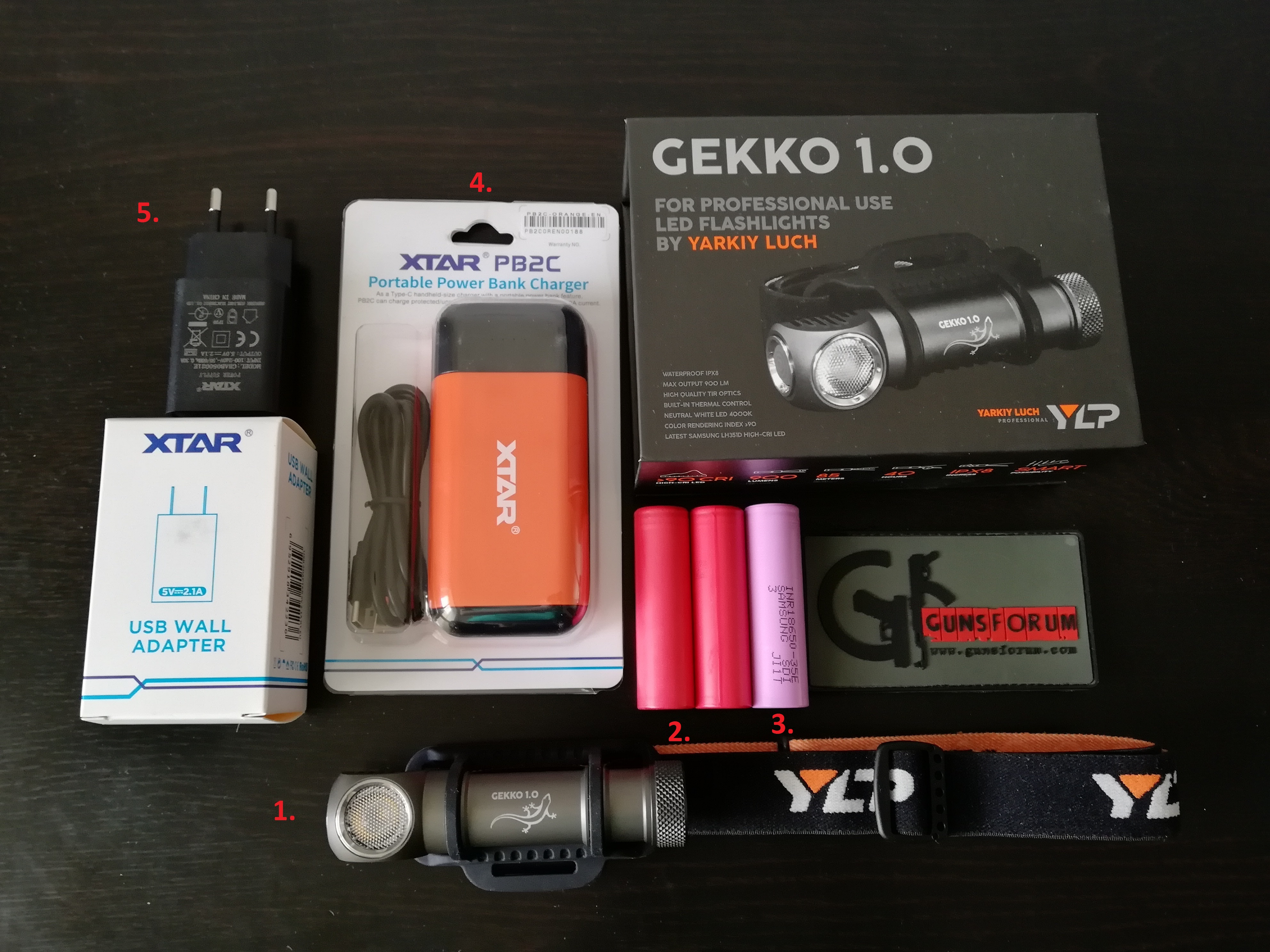 1) Налобный фонарь: YLP Gekko 1.0