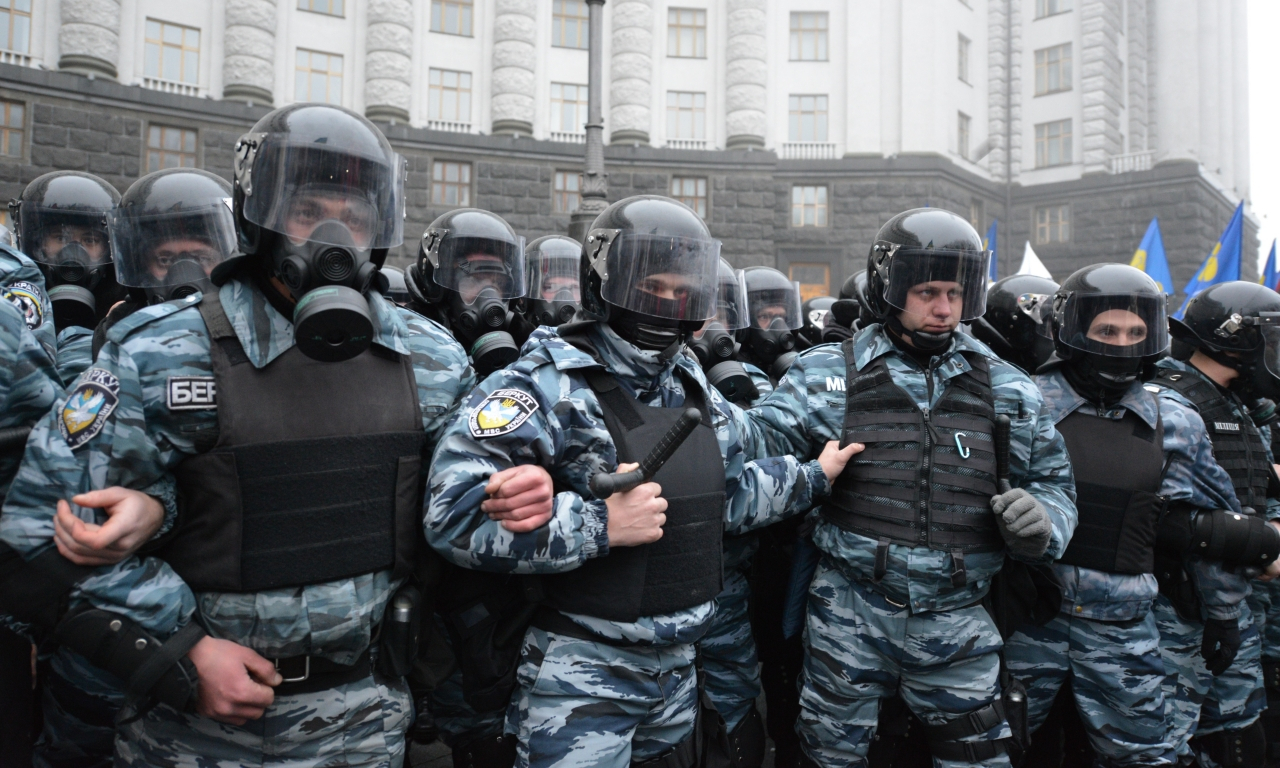 [2013 - 2014] Отряд «Беркута» в оцеплении правительственного квартала (на подступах к зданию кабинета министров Украины).
